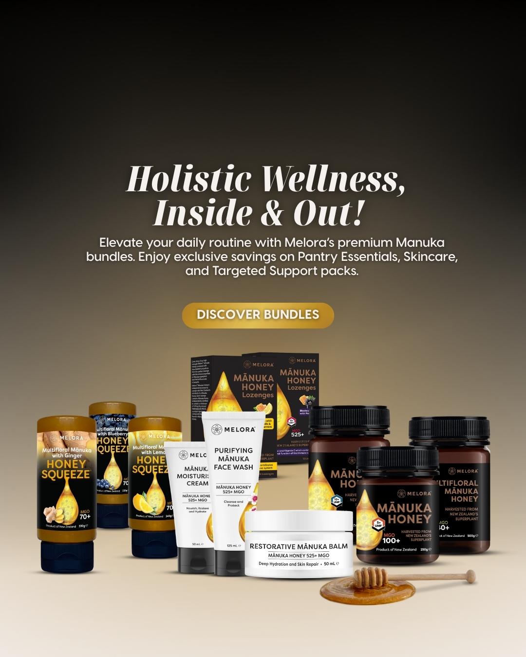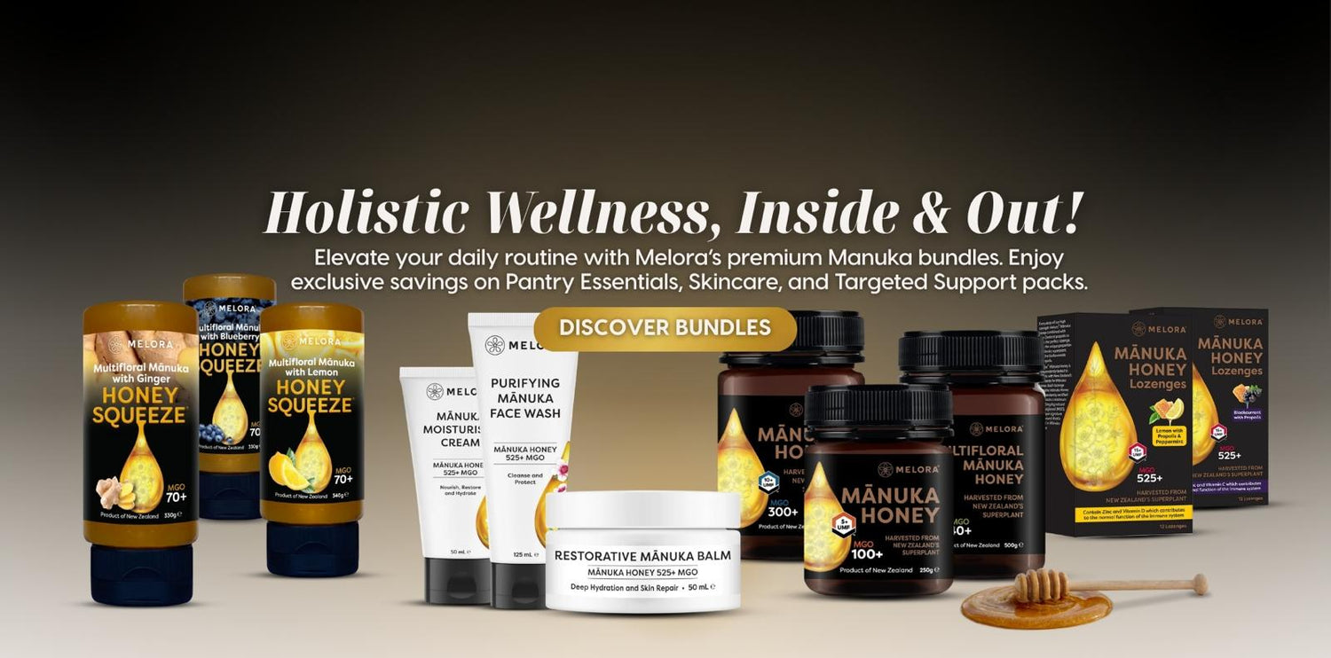 Welcome to Melora®, your source for the finest New Zealand Mānuka Honey in the UK. Explore the health benefits of New Zealand's indigenous super plant, Mānuka, through our premium honey, wellness products and skincare products.